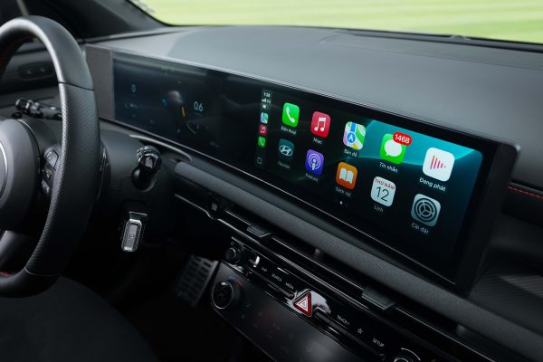 Vô-lăng, cần số bọc da, điểm xuyết logo N Line, cho cảm giác cầm nắm phấn khích như xe thể thao thực thụ.